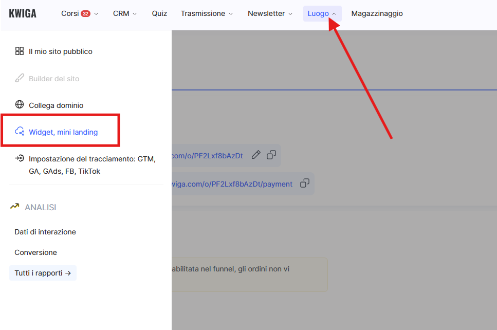 Vai alla scheda Link e Mini Landing — lì troverai il link a questa pagina. Questo è il link che devi copiare e incollare nel campo Pagina di successo dopo il pagamento all’interno delle impostazioni della tua offerta.