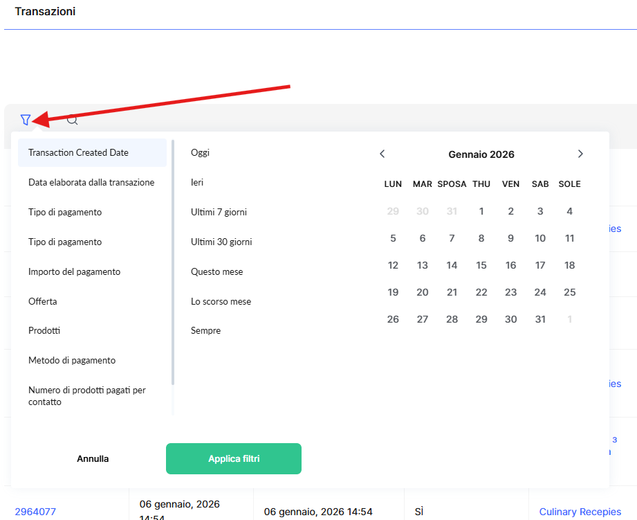 Tieni presente che puoi personalizzare la visualizzazione delle colonne in questo report in base alle tue preferenze. Per maggiori dettagli, consulta l’articolo sui Transazioni.