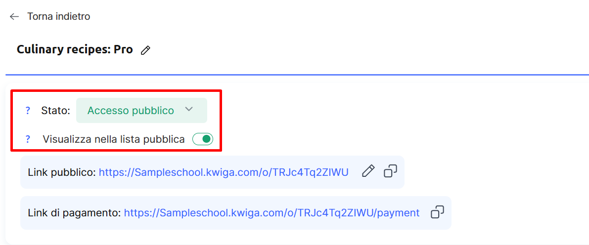 Per trovare il link che gli studenti utilizzeranno per iscriversi, scorri di nuovo fino all’inizio della pagina: qui troverai il Link pubblico.