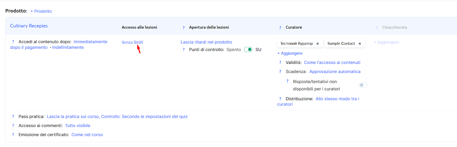 Se invece vuoi modificare la durata dell’accesso demo, ovvero il periodo durante il quale gli studenti possono visualizzare le lezioni demo selezionate, vai alla sezione Prodotto.