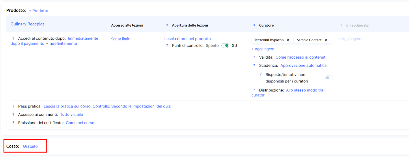 Nella finestra che si apre puoi selezionare le lezioni che saranno disponibili gratuitamente. Puoi scegliere: