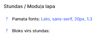 Galvenā šī bloka priekšrocība ir tā, ka informācija automātiski parādās visās nodarbību lapās — tev nav jāievieto tā katrā nodarbībā atsevišķi.