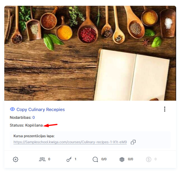 Kopētais kurss parādīsies jūsu produktu sarakstā ar prefiksu Kopija pirms nosaukuma. No šī brīža tas būs neatkarīgs produkts. Jūs varat to rediģēt, konfigurēt, pievienot vai noņemt materiālus, neietekmējot oriģinālo kursu.