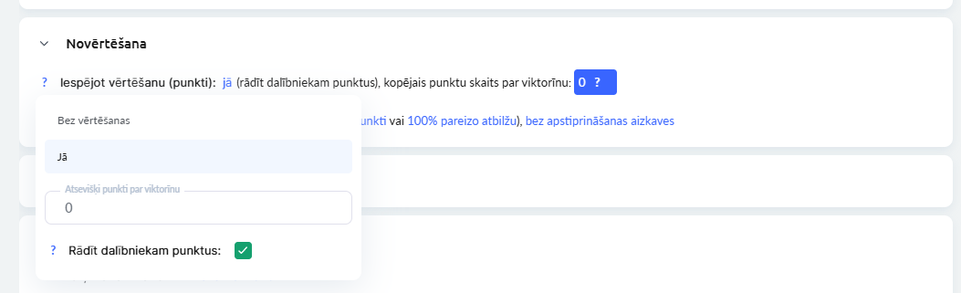 Punkti – papildu opcija, lai noteiktu punktus par pareizu atbildi.