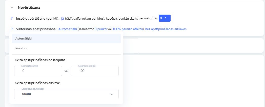 - Kā izveidot testu ar punktiem un automātisku apstiprinājumu