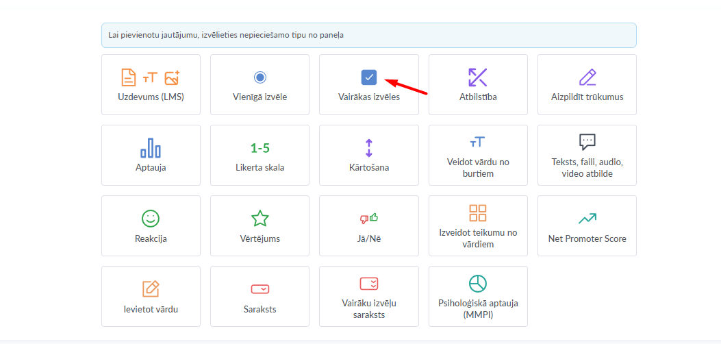 Vairākas izvēles – jautājums ar vairākām pareizām atbildēm.