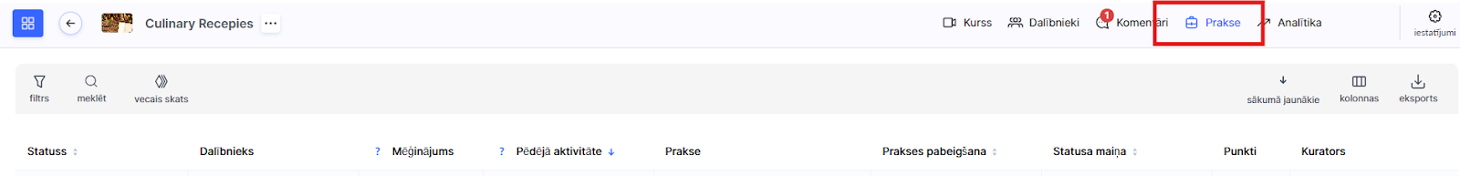 Kad students ir pabeidzis aktivitāti, tā parādās izvēlnē Praktiskās aktivitātes.