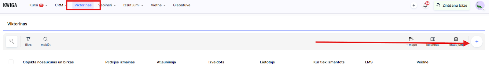 Testi Kwiga platformā tiek veidoti atsevišķi no nodarbībām un ir pieejami sadaļā Viktorīnas.