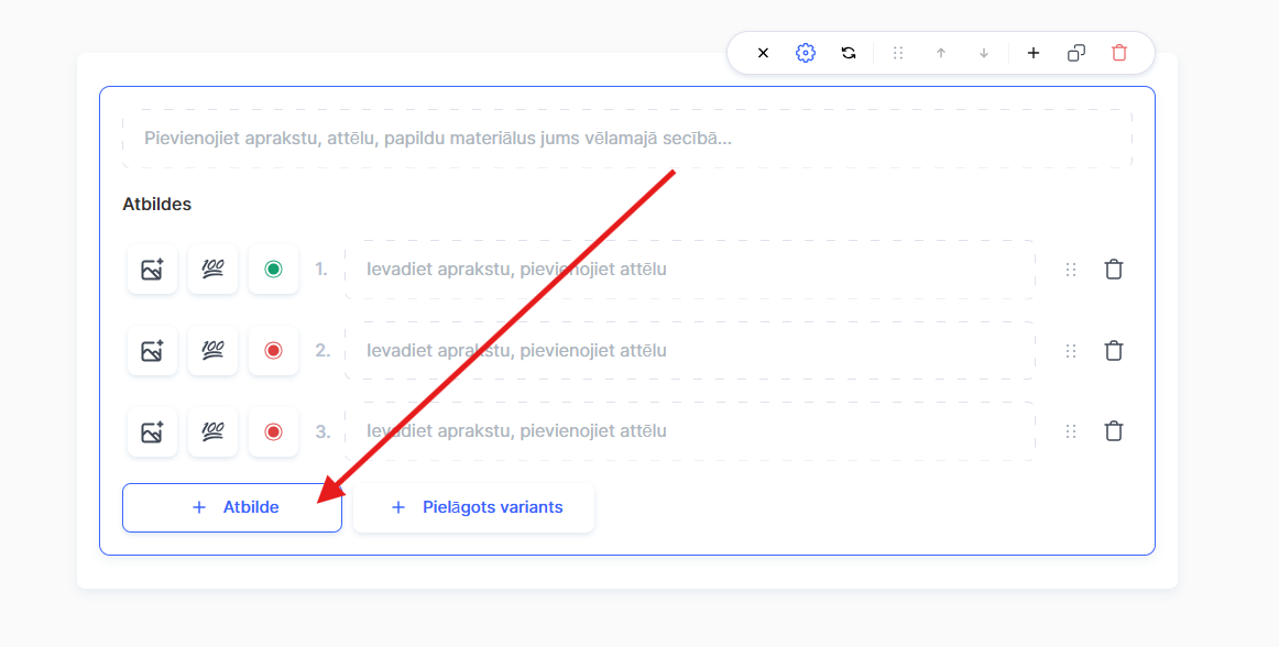 Pievienojiet atbilžu variantus, izmantojot pogu + Atbilde