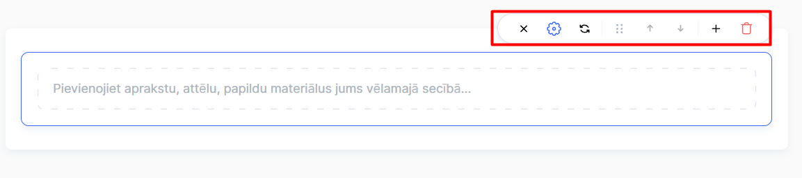 Novietojot kursoru virs jautājuma, parādās rīkjosla, kas ļauj: