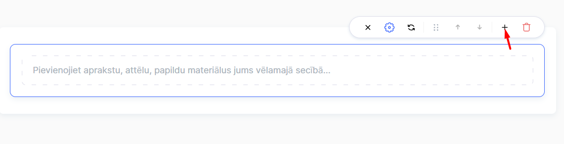 Padoms: Ja kursā plānojat daudz praktisko uzdevumu, uzreiz iekļaujiet uzdevuma nosaukumā nodarbības numuru vai nosaukumu — tas atvieglos turpmāko kursa aizpildīšanu un rediģēšanu.