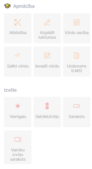 Par dažādiem uzdevumu veidiem, kas pieejami Kwiga platformā, varat lasīt rakstā Viktorīnas, prakse: jautājumu veidi.