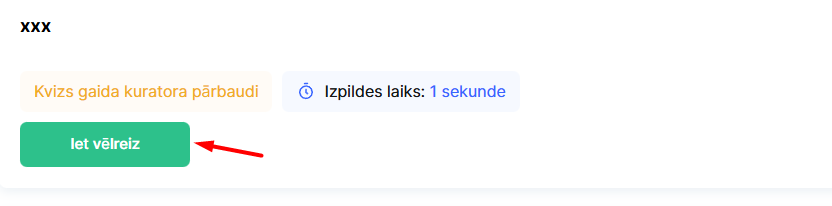 Kad students pabeidz uzdevumu ar obligātu kuratora pārbaudi, zem nosaukuma parādās statuss Viktorīna gaida kuratora pārbaudi.