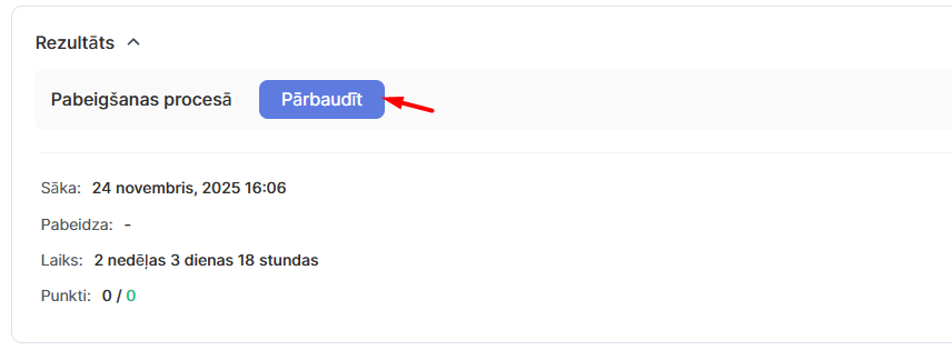 Tikai pēc kuratora pārbaudes statuss mainās uz Izpildīts, Nav izpildīts vai Nepieciešami labojumi.