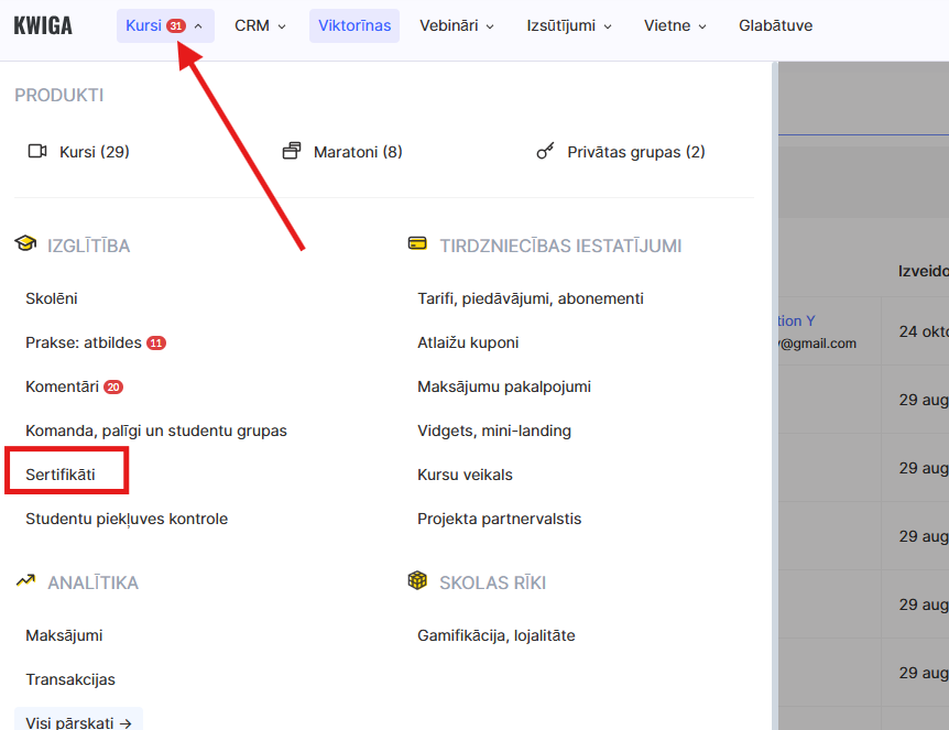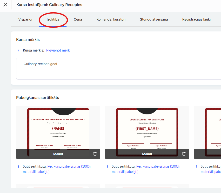Kā izveidot sertifikātu, kuru dalībnieki saņems pēc veiksmīga kursa pabeigšanas.