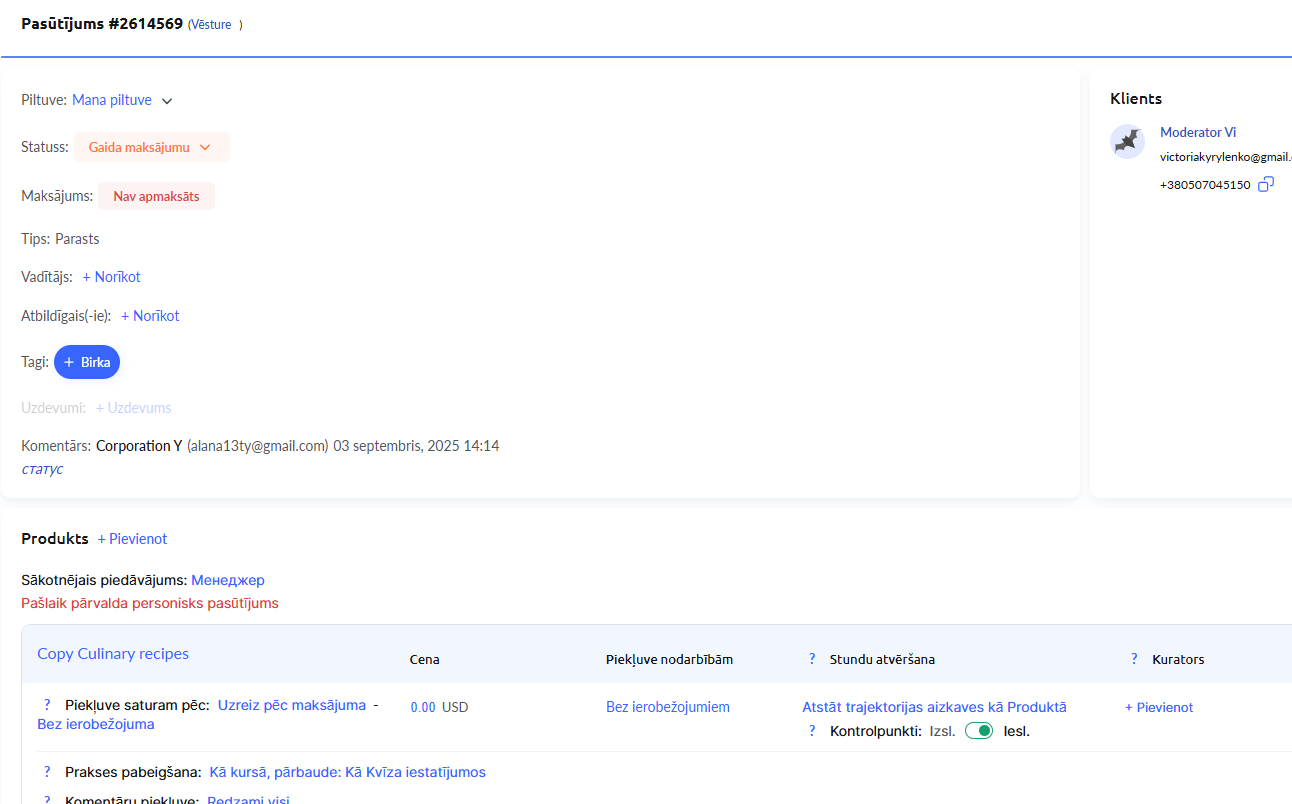 Ja rediģējat pasūtījumu, kas tika automātiski izveidots pēc piedāvājuma apmaksas, rediģēšanas laikā tiek izveidota īpaša piedāvājuma kopija. Tas tiks norādīts pasūtījumā: pirms piedāvājuma nosaukuma tiks pievienots teksts “Tagad pārvaldīts ar personīgo pasūtījumu”. Jebkādas turpmākās izmaiņas sākotnējā piedāvājumā vairs neietekmēs šī klienta piekļuvi, jo tā kļūst individuāla.