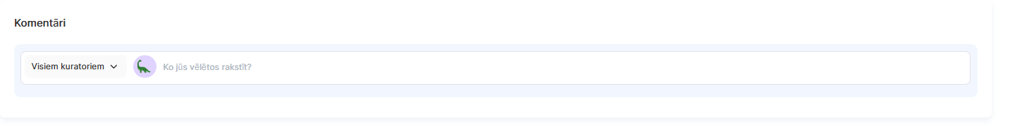 Rakstot komentāru, dalībnieki var izvēlēties adresātu no saraksta. Sistēma parāda kuratorus, kuriem ir piekļuve konkrētajam dalībniekam (individuāla vai vispārēja piekļuve visiem dalībniekiem). Ja ir vairāki kuratori, parādās opcija Visi kuratori — šāds komentārs būs redzams visiem pasniedzējiem ar piekļuvi.