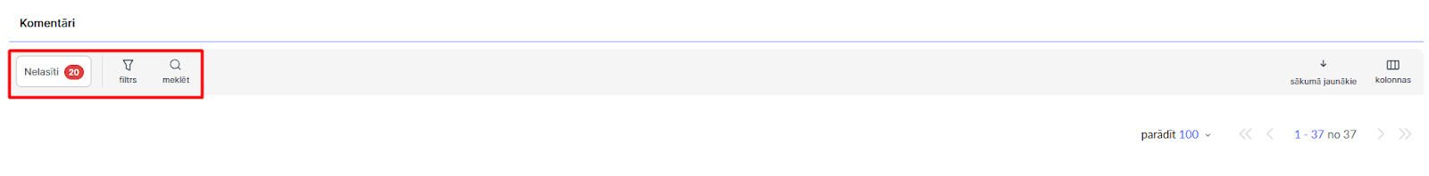 Tu vari atbildēt tieši no saraksta, kopēt vai paslēpt komentāru un atzīmēt to kā izlasītu. Ir pieejamas arī kārtošanas opcijas — sākot no jaunākajiem vai no vecākajiem.
