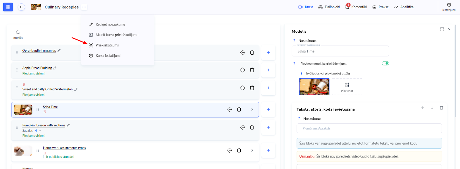 Kā skatīt kursu no studenta viedokļa, viss par kursa priekšskatīšanu un pārskatu.
