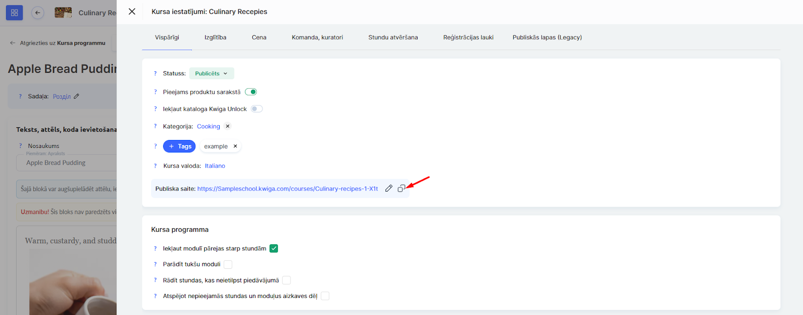 Tāpat, ja atverat publisko kursa vai nodarbības saiti, kamēr esat pieteicies savā kontā, jūs redzēsiet kursu (vai nodarbību) priekšskatījuma režīmā.