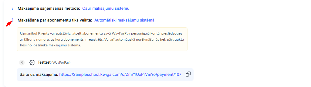 Sadaļā Abonementa ieturēšana izvēlieties, ka ieturēšana notiek caur maksājumu sistēmu.