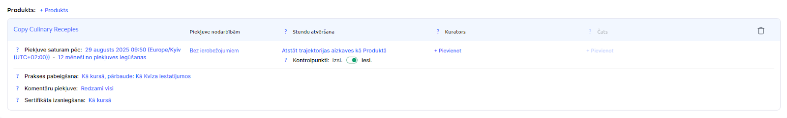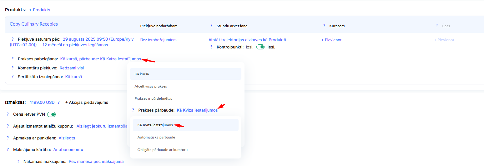 Ja kursam esat pievienojis kontrolpunktus (nosacījumus, kas jāizpilda, lai pabeigtu uzdevumu vai testu pirms turpināšanas), pārliecinieties, ka šī opcija ir aktivizēta arī piedāvājumam.
