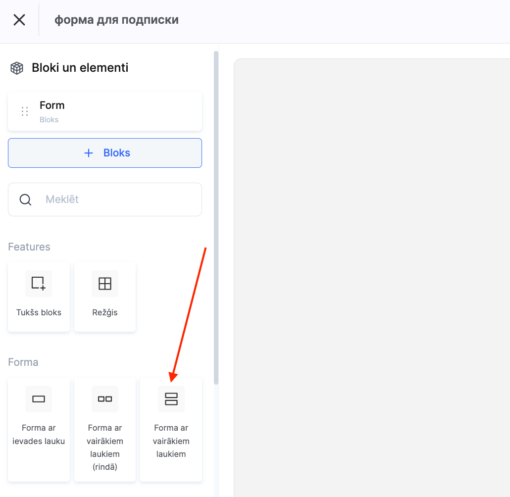 Pievienojiet jaunu bloku, izvēloties Forma.