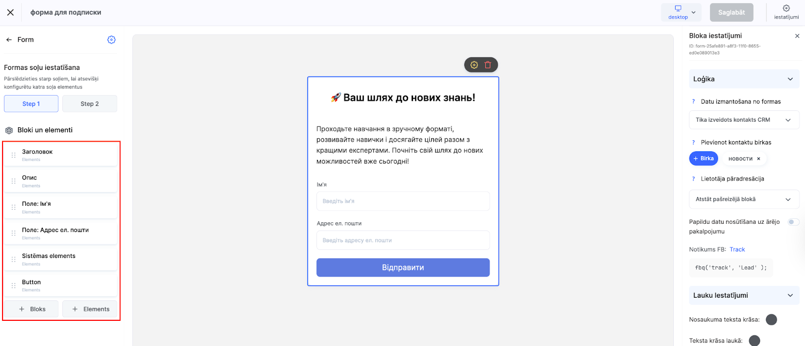 Dodieties uz sadaļu Bloki un elementi.