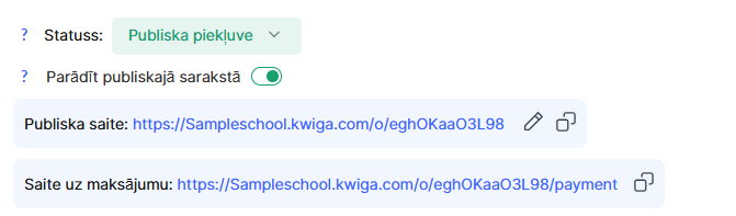 Statuss nosaka, vai studenti var iegādāties kursu ar šo piedāvājumu un vai tas ir redzams kursa publiskajā lapā.
