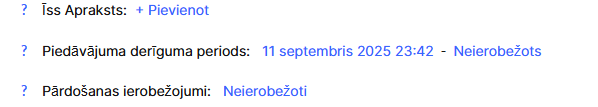 Ja vēlaties mainīt informāciju, kas tiek rādīta pirms pogas “Vairāk informācijas”, varat aizpildīt piedāvājuma īso aprakstu. Šim laukam ir noteikts rakstzīmju ierobežojums.