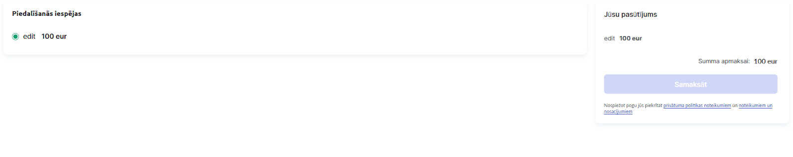 Kā palaist kursa reģistrāciju ar priekšapmaksu