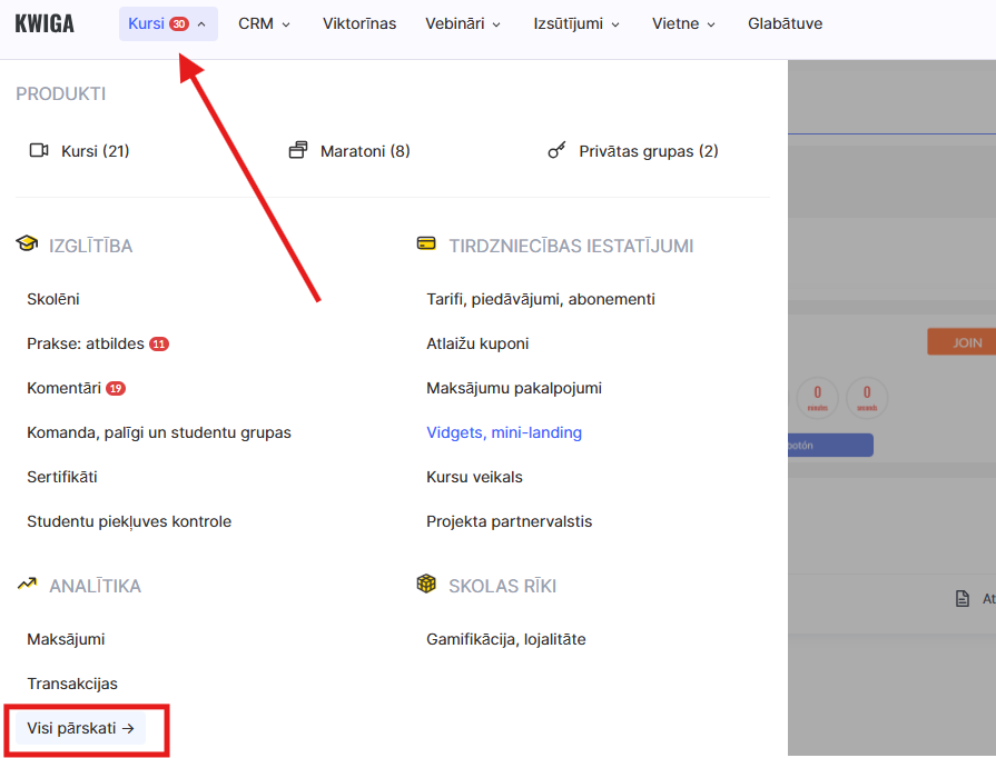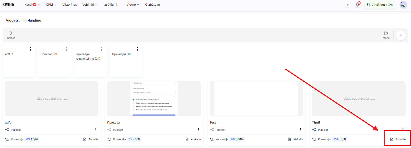 Varat piekļūt widgetu statistikai no izvēlnes Kursi → Visas atskaites