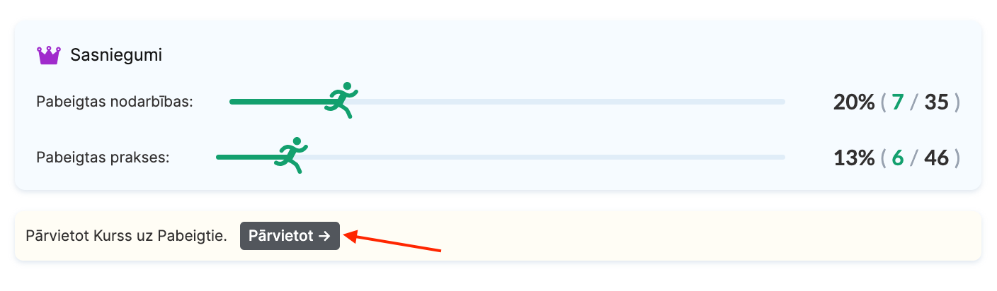 Kursi var automātiski pāriet uz sadaļu Pabeigts trīs gadījumos: