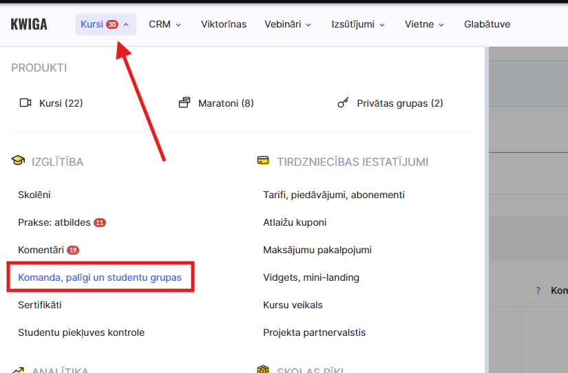 Lai atvērtu šo sadaļu, dodieties uz augšējo izvēlni Kursi.