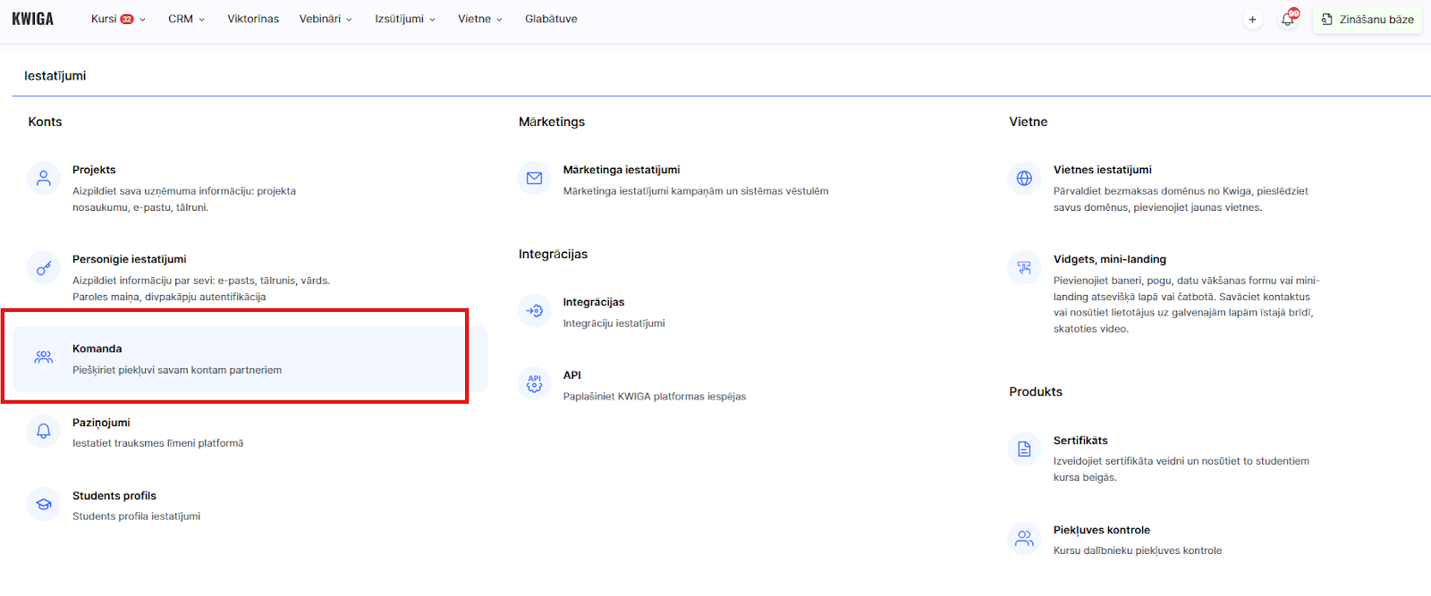 ● Kwiga platforma nodrošina ērtu komandas pārvaldību, ļaujot ātri pievienot lietotājus, mainīt lomas un noņemt tos bez riska zaudēt svarīgus datus. Elastīgā piekļuves sistēma palīdz uzturēt kārtību darba procesos un nodrošina efektīvu sadarbību starp visiem komandas dalībniekiem. Ar Kwiga jūs varat viegli pielāgot savu komandu projekta vajadzībām un paplašināt to bez liekām sarežģījumiem.