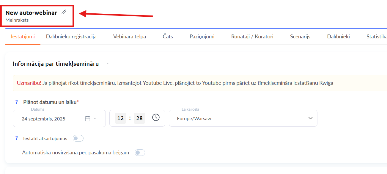 Nosaukumu var mainīt automatizētā vebināra iestatījumos.