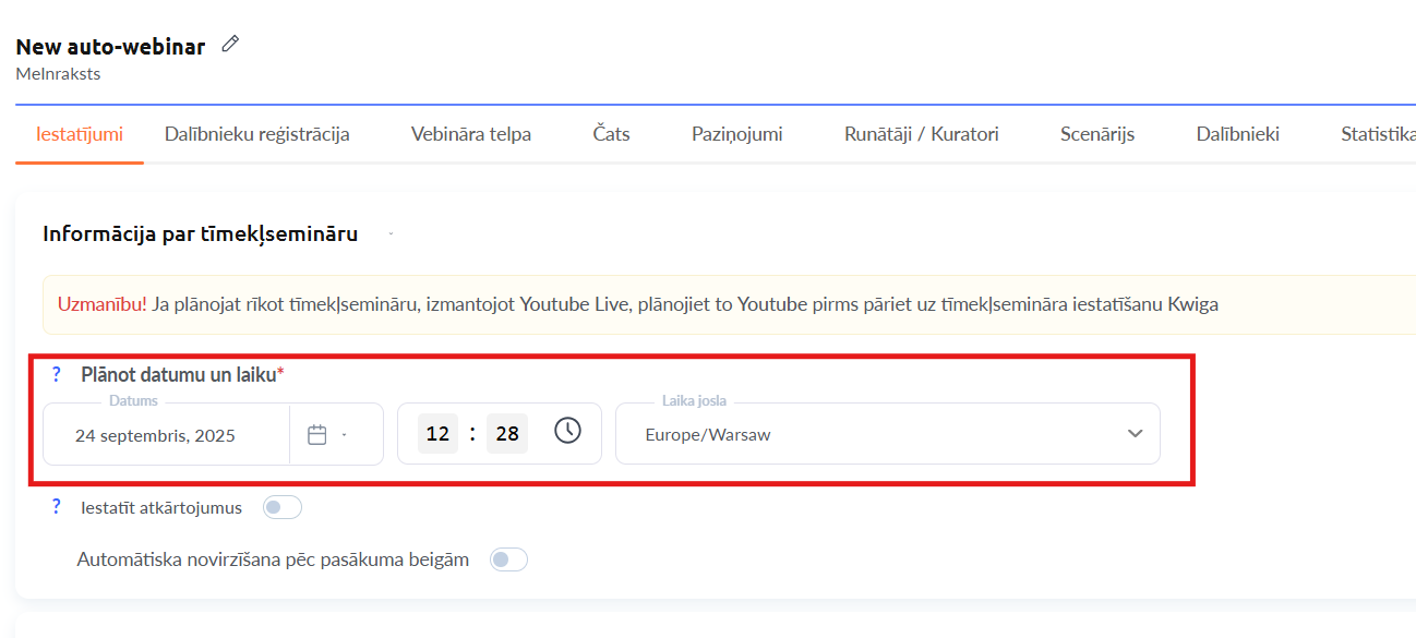 - Vispārīga informācija par vebināriem un automatizētajiem vebināriem