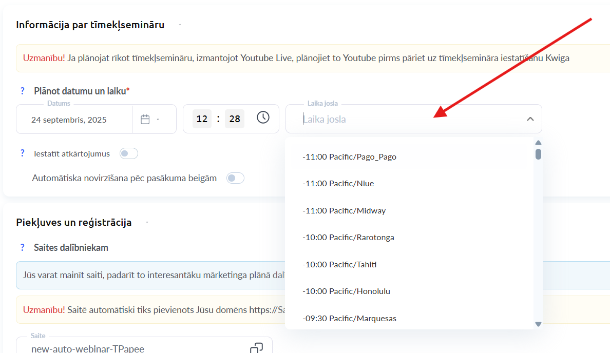 Ja plāno organizēt vebināru dalībniekiem, kas atrodas citā laika joslā (piemēram, citā valstī), tev būs jāpievērš īpaša uzmanība šim aspektam.