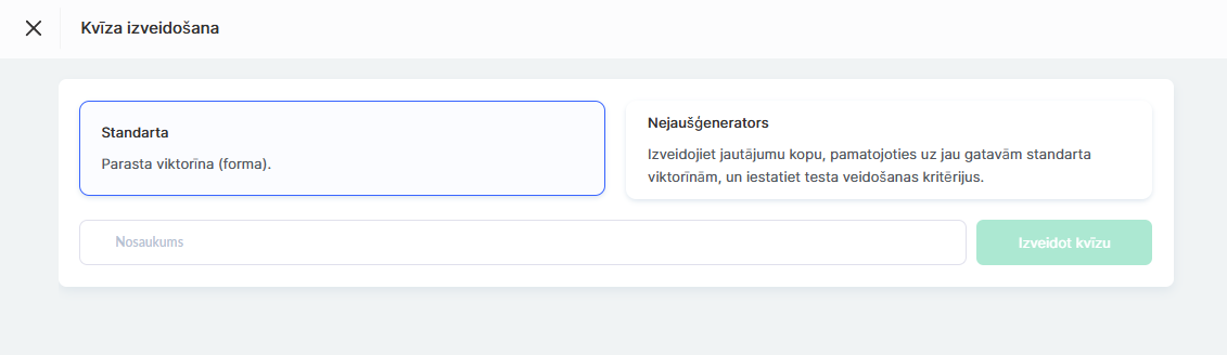 Izvēlieties Standarta viktorīna un ievadiet nosaukumu atbilstošajā laukā.
