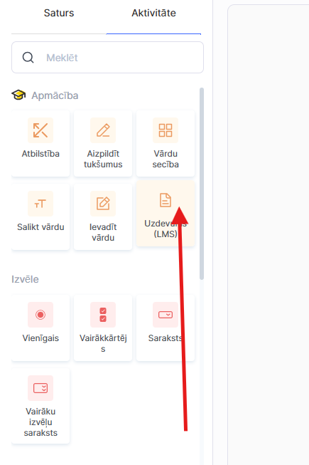 Atlasiet uzdevuma veidu — LMS uzdevums.