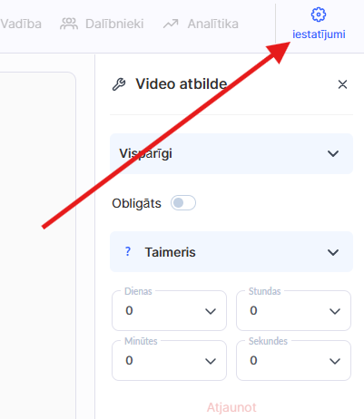 Atļaut video atbildes — students/-e var ierakstīt videoziņu; ērta iespēja uzdevumiem, kuros nepieciešams demonstrēt prasmes vai izpildīt praktiskus vingrinājumus. Galvenais nosacījums ir atļaut pārlūkprogrammai piekļuvi kamerai.