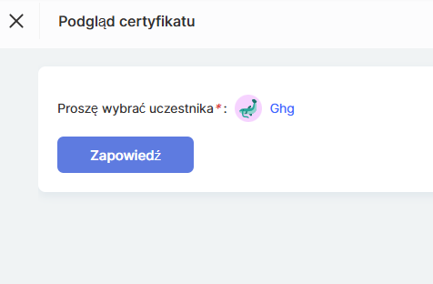 Jeśli certyfikat ma tylko jedną wersję językową i nie była ona edytowana ręcznie, system automatycznie pobierze aktualne imię z profilu użytkownika.