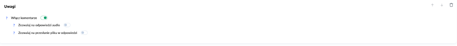 W razie potrzeby można włączyć dodatkowe opcje Zezwalaj na odpowiedzi audio (umożliwia dodawanie komentarzy głosowych) czy Zezwól na przesyłanie plików w odpowiedzi (pozwala dołączać dokumenty lub obrazy).