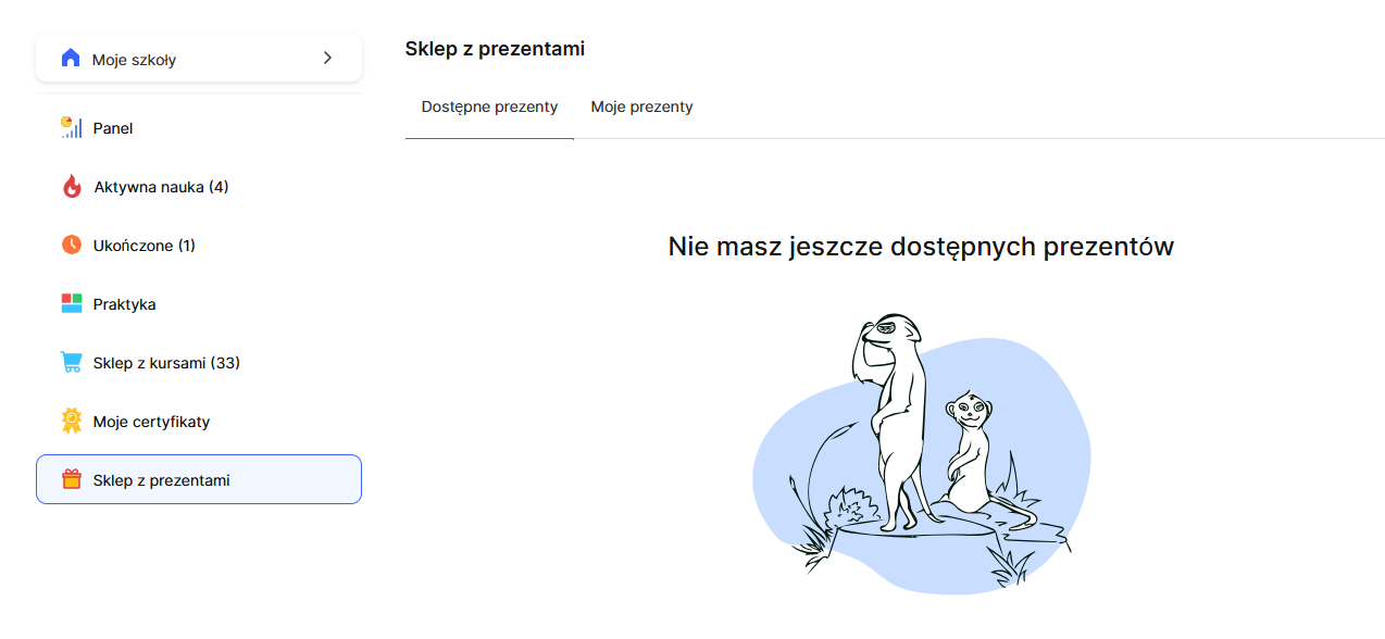 Możesz tworzyć różne typy prezentów: od produktów cyfrowych na platformie (dodatkowe kursy, moduły, materiały) po nagrody zewnętrzne (vouchery, konsultacje, produkty fizyczne). Warunki otrzymania prezentu mogą być różne: wymiana zgromadzonych punktów lub spełnienie określonych warunków, które ustalasz samodzielnie. Każdy prezent może być również ograniczony ilościowo, aby stworzyć efekt ekskluzywności.