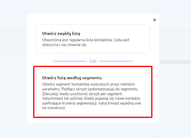 Następnie wybierz Utwórz listę wedlug segmentu.
