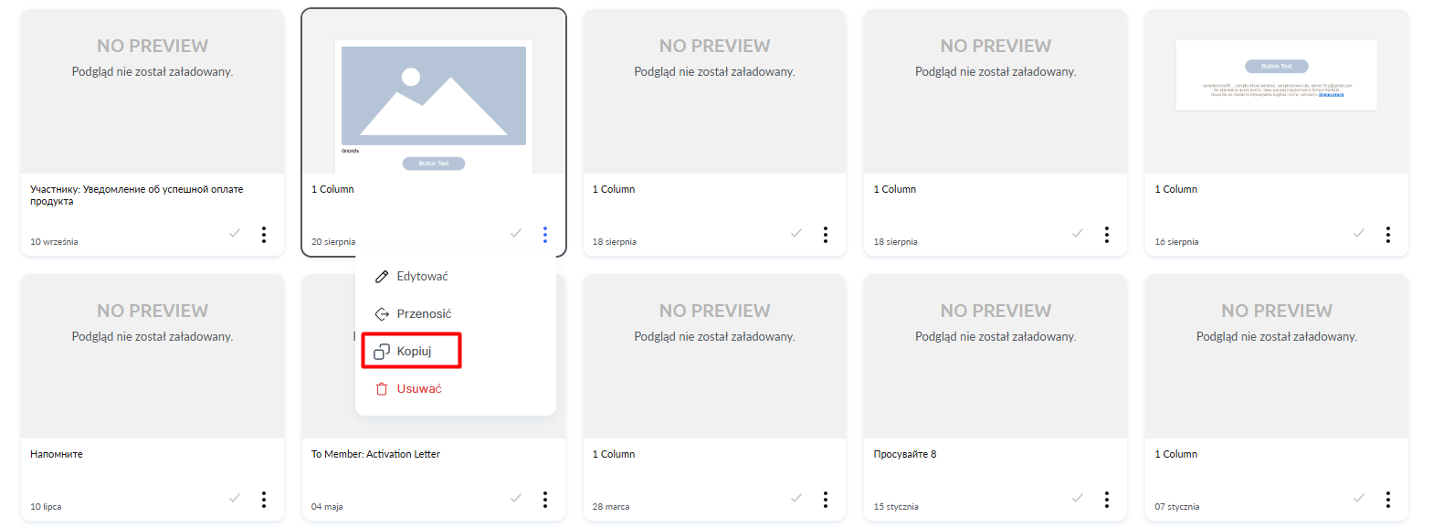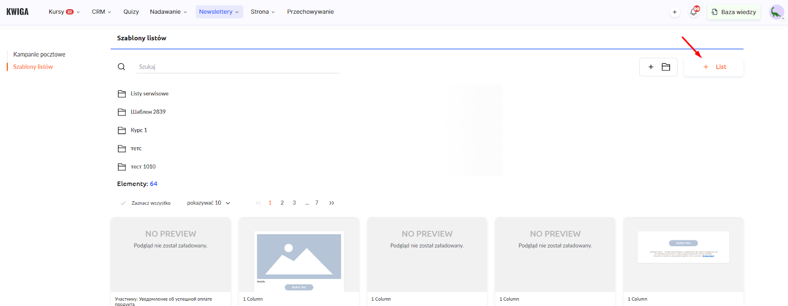 Utwórz nowy szablon e-maila w menu Newslettery → Szablony listów.