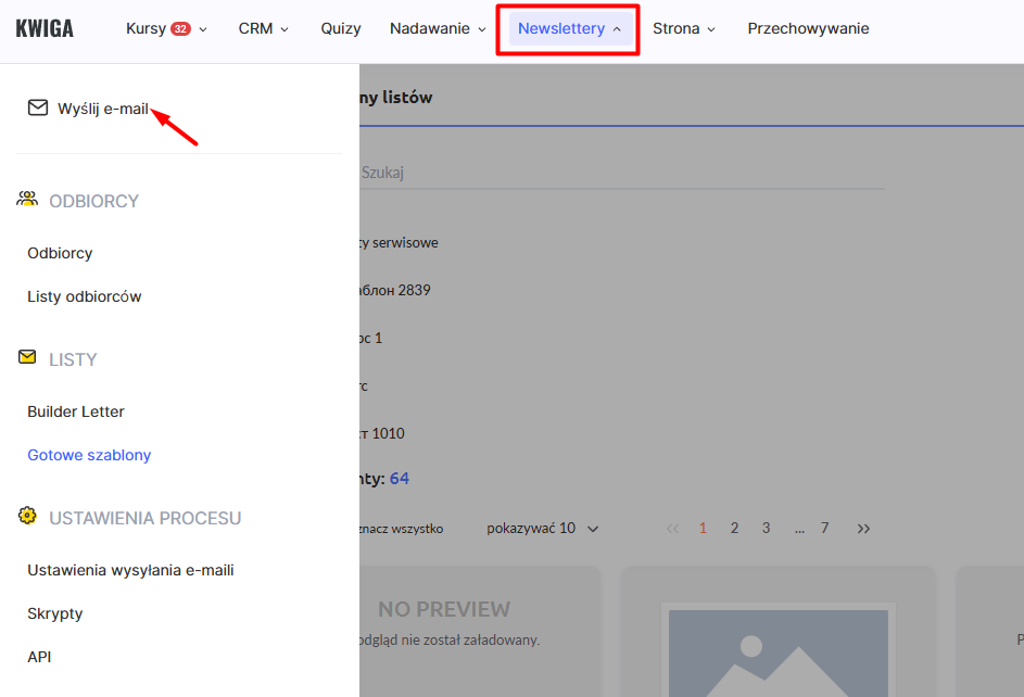 Przejdź do sekcji Wysyłki → Wyślij e-mail i kliknij + Newslettery.