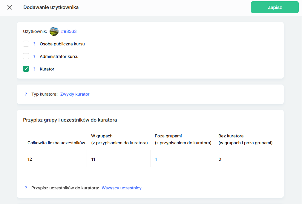 Więcej informacji o tym, jak stworzyć grupę uczestników i przypisać ją do konkretnego kuratora, znajdziesz w osobnym artykule.