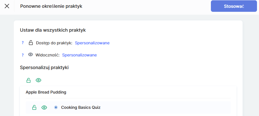 Spersonalizowane – można selektywnie ustawić, przy których konkretnych praktykach kurator będzie widoczny, a przy których nie.