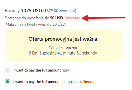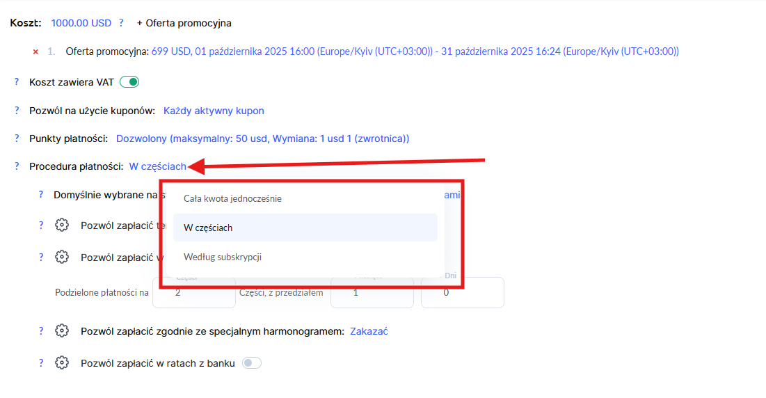 Podczas ustawiania systemu ratalnego możesz również wskazać, jaka kwota ma być wyświetlana jako pierwsza płatność na stronie zakupu.